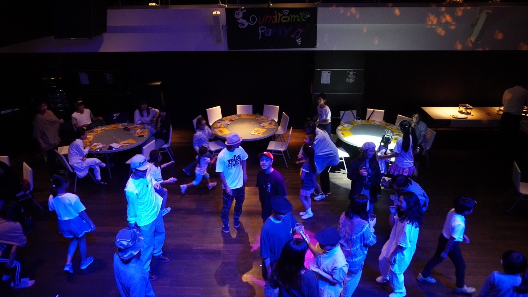 ビュッフェを取り入れたパーティーでどんな方でも楽しめるようにテーブル席あり、踊るもよし、楽しく会話をするのもよしな